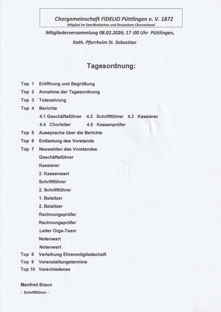 Jahreshauptversammlung 2026